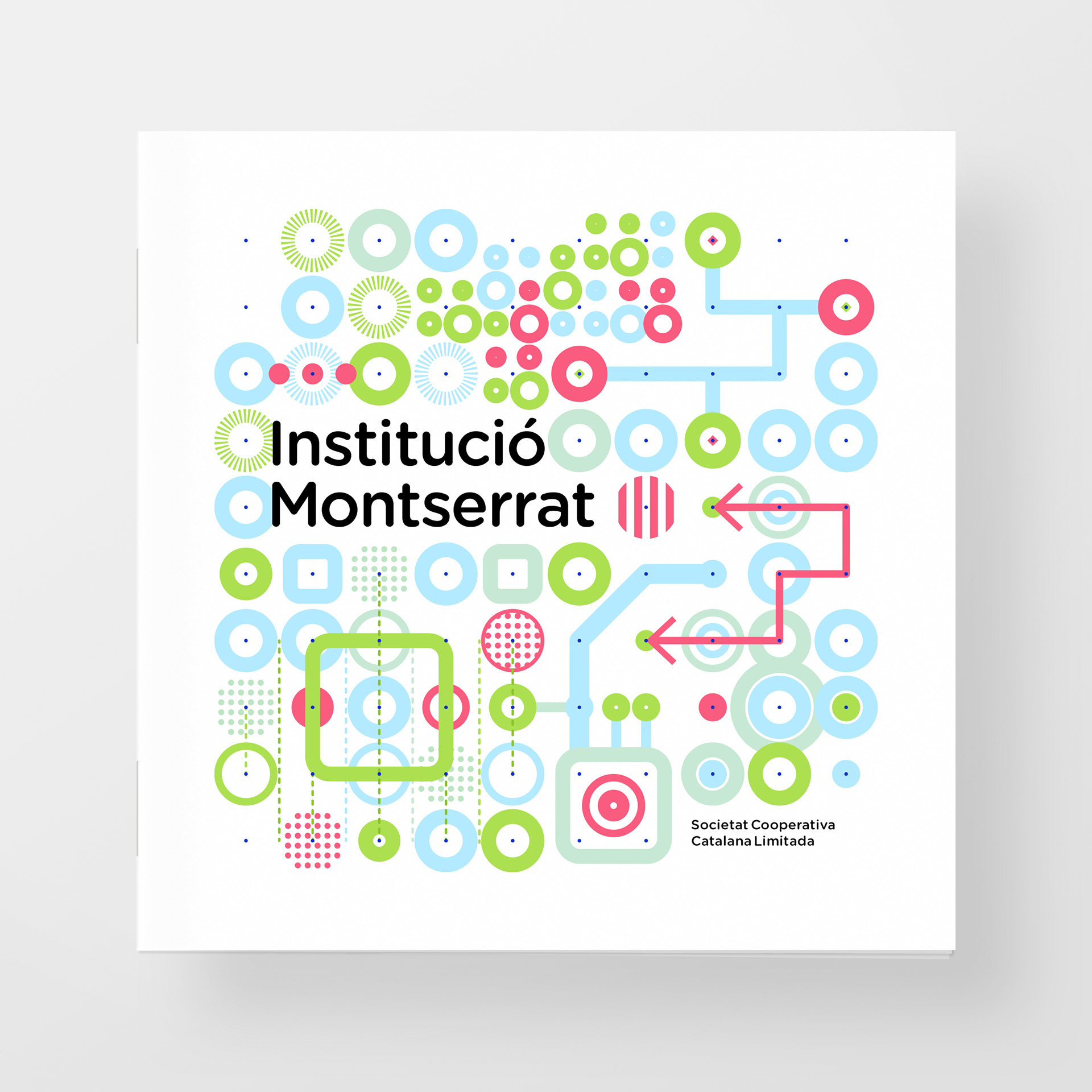 Librito promocional para la escuela Institució Montserrat de Barcelona. Diseño de gráfica geométrica conceptual para explicar la diferente interacción entre personas.